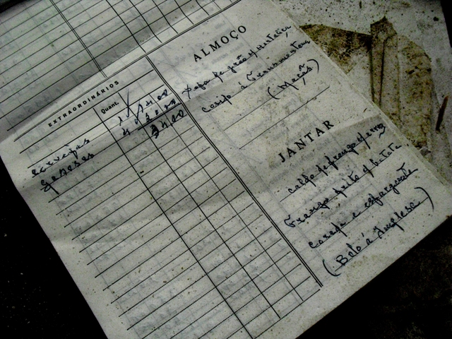 Ementa (fiquei na dúvida se é mesmo da altura do funcionamento do Sanatório, uma vez que se encontra no meio de muita documentação abandonada de uma empresa de construção civil)